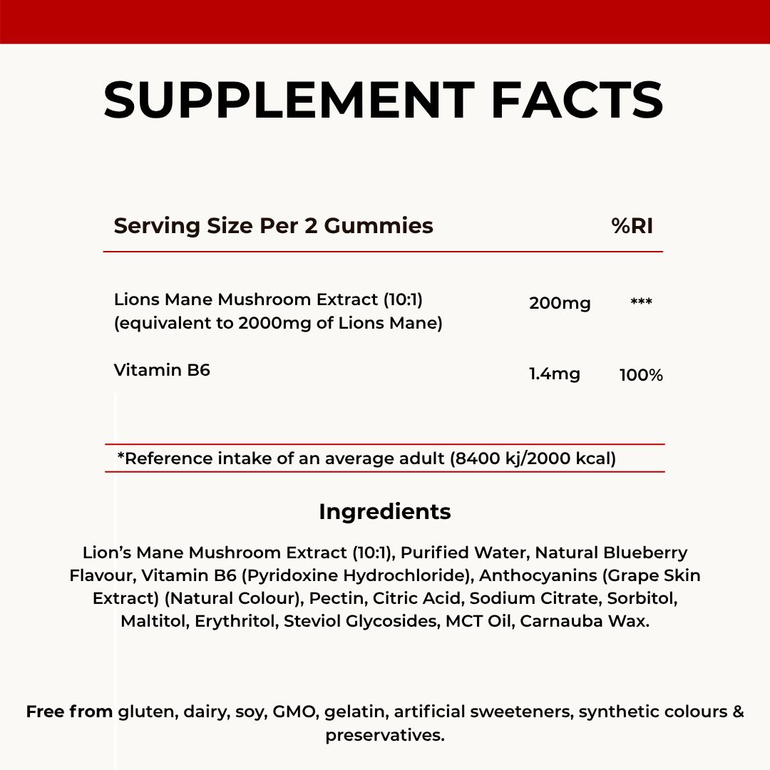 A daily gummy designed to help you stay clear-headed, focused, and mentally steady. Our Lion’s Mane blend offers natural nootropic support, giving you that sharper, more switched-on feeling without caffeine or crashes. Ideal for busy days, creative work, studying, or whenever you want your brain operating at its best.